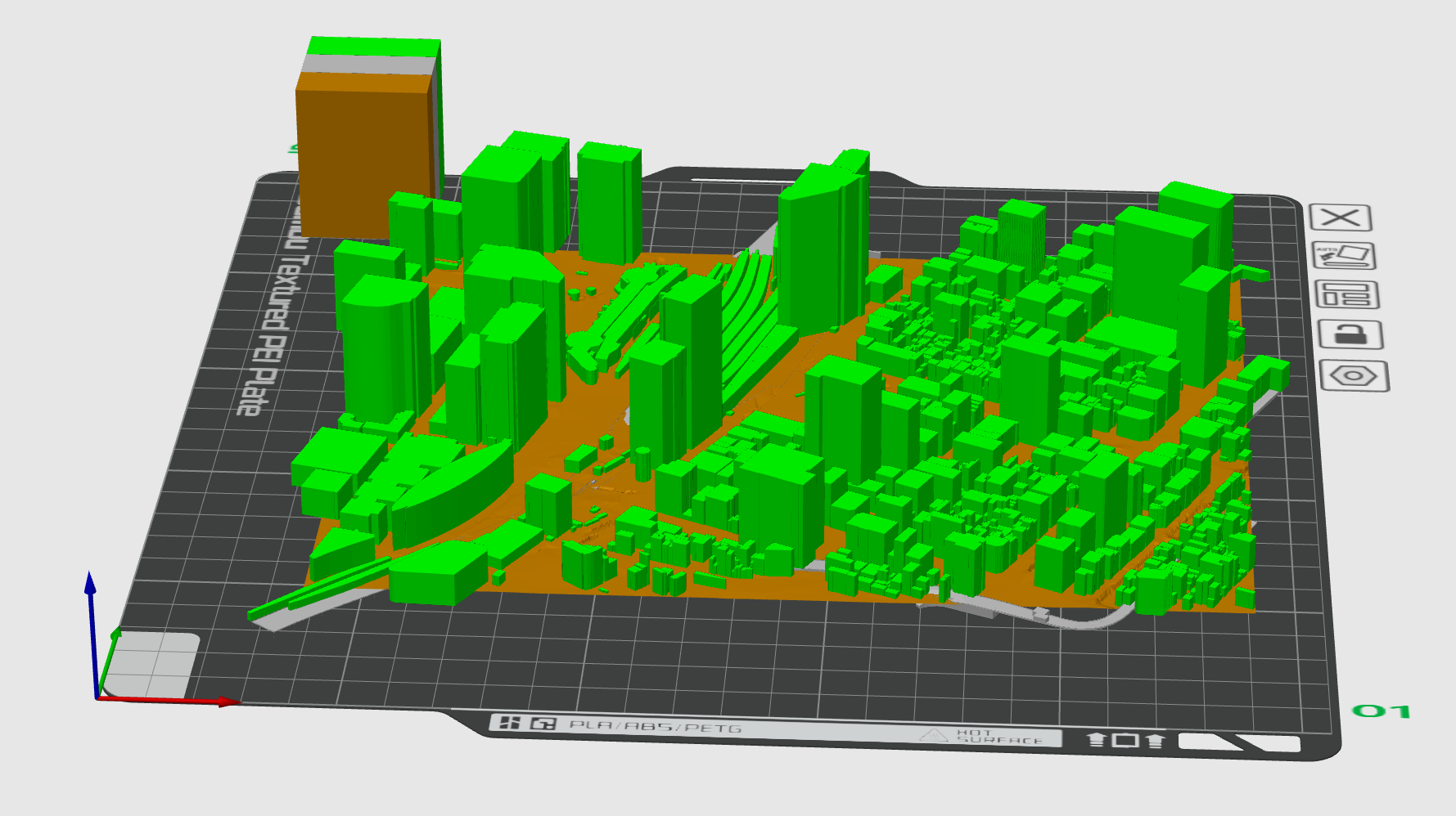 2 Minutes これから分類します PLATEAUのデータを使って4色3Dプリンタでかっこいい都市模型を印刷する その2_複数色で印刷 Koji-Ito 2026-02-01 複数色で印刷する方法をようやく確立しました。 最初にその1で紹介した建築物と橋、そして地面の3つのファイルを合体せずに別々のSTLファイルで保存します。そしてその3つを次のようにBambu Studioで同時に読み込みま […]... Read More